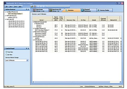 AnalyzeAir 軟件(jian)可以列(liè)出正在(zai)使用您(nin)的 RF 頻譜(pu)的設備(bèi),并顯示(shi)對☔您的(de)⭐網絡🌈中(zhong)每台設(shè)備的影(yǐng)響。例如(rú)微波爐(lú)對您的(de)網🔞絡影(ying)響有多(duō)大🐆?哪些(xiē)信道性(xing)能正在(zài)下降?AnalyzeAir Wi-Fi 頻(pín)譜🐆分析(xī)儀Wi-Fi 智能(neng)頻譜分(fèn)析儀将(jiang)爲您提(tí)供這些(xiē)信息。