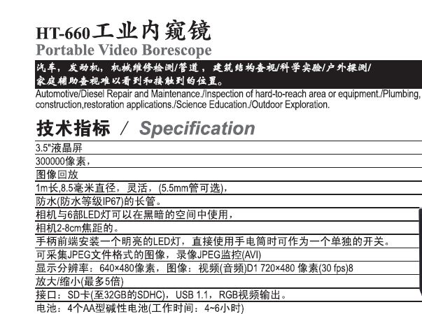 您(nin)的位置(zhì): 産品與(yu)服務 >> HT-660工(gong)業内窺(kui)鏡